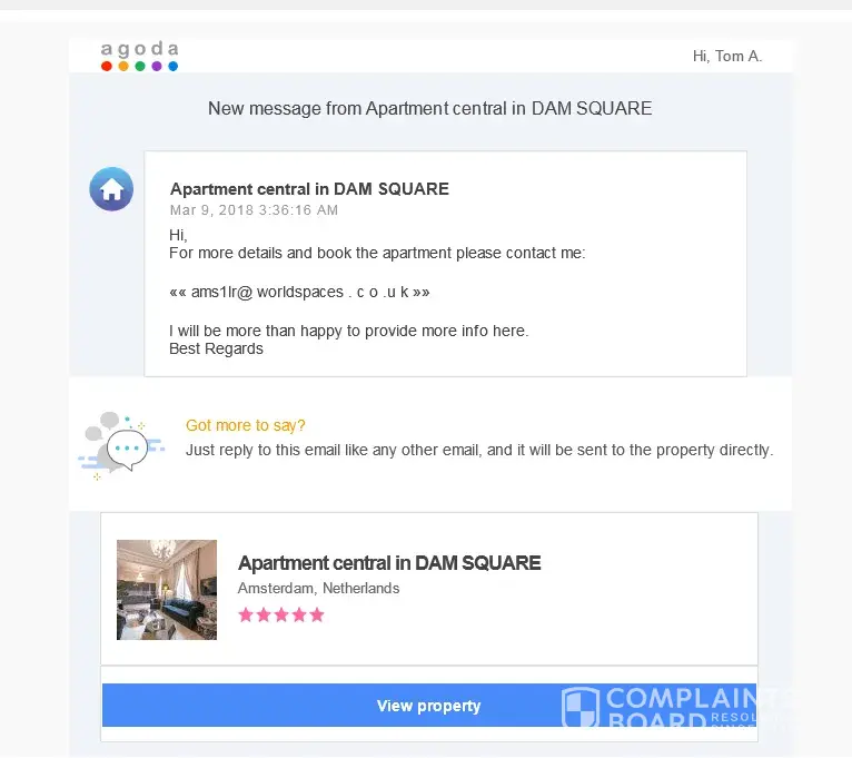 The recently viewed tab on your homepage shows that you are aware they were frauds but unfortunately too late. I am in England but it was for amsterdam.