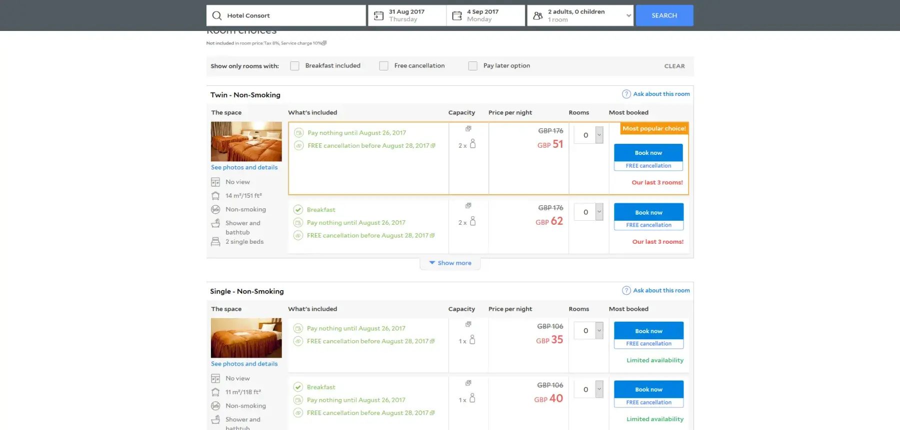 A quick glance reveals that the same hotel still has rooms available for the same days. Also, the same green text Is prevalent displaying the blatant dishonest Information. This Is extremely deceitful to customers.