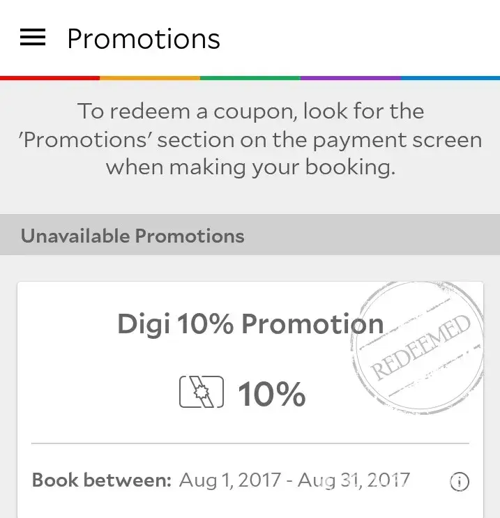 I received 10% discount from agoda for any booking period until 31/8/17. However, my promotion status is "redeemed" by agoda while i'm not done any booking yet.