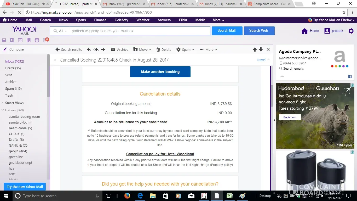 I have cancelled my room booking on August 2017 vide cancellation id [protected] and the refund amount was rupees 3789.68 however till now there is no response regarding my refund. Very difficult to reach your customer support through telephone which they do not call back after receiving the voice message.