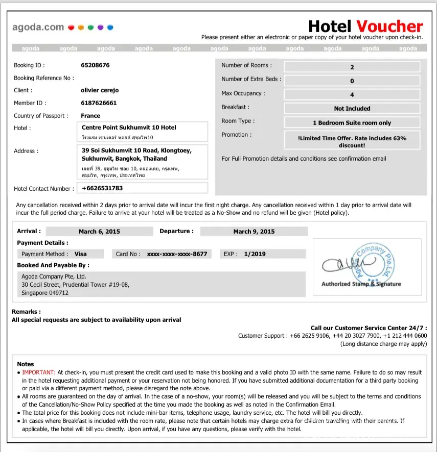 Booking hotel with Agoda, I mostly use Hotel.com and booking.com or other due to their bad reputation on customer service and cancellation and refund policy of agoda. I have been cheat by Agoda myself.