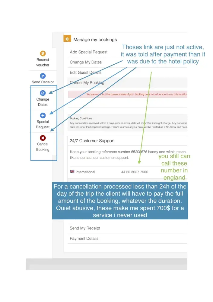 they are charging 15usd for cancellation while the total bill is 15.74 there were no terms like this