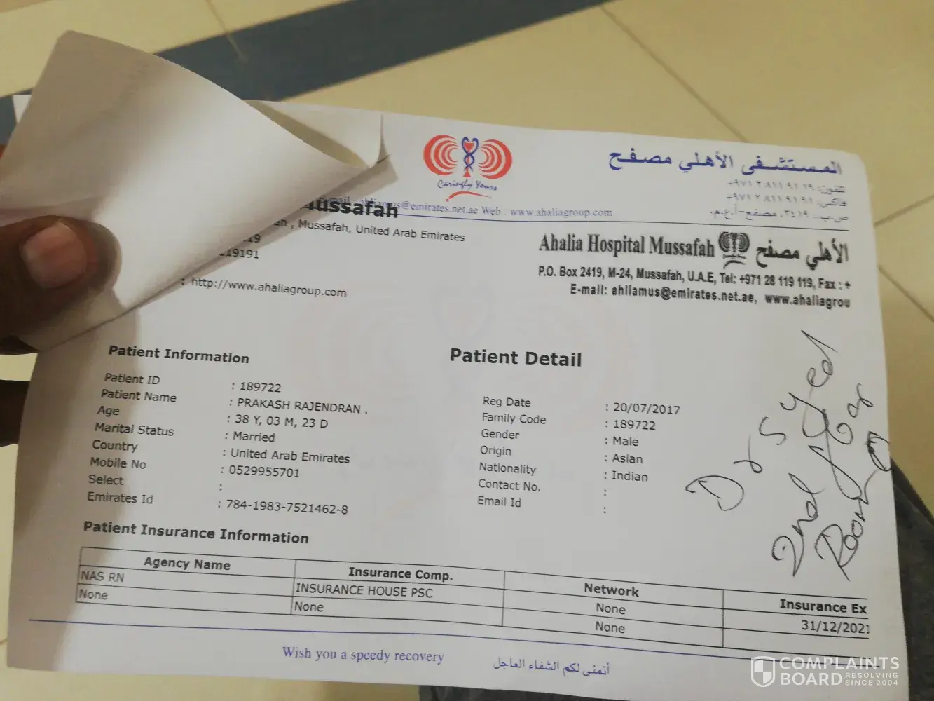 👉  Submit a complaint about Ahalia Hospital / Ahalia Group