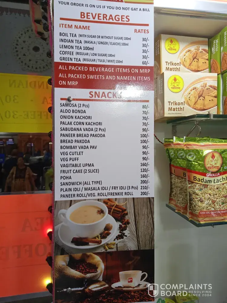 I boarded the airport to go to Jaipur. Where in the airport, more money was being collected in the airport at a food shop named Gwalia which was in the interest of the customer And be abusive when asked for it