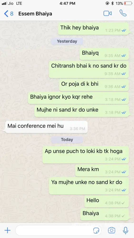 Sir last time mene intership ke liye apply kiya tha but abhi tab kuch nhi hua mujhe se fees le li but refund ke liye kuch nhi hua or mujhe sabhi jaipur lc wale ke block kr diya i need a help pleaaee do somthing ap photo me dekh skte ho ki mere. Massge ka reply na dekr block kr diya mujhe