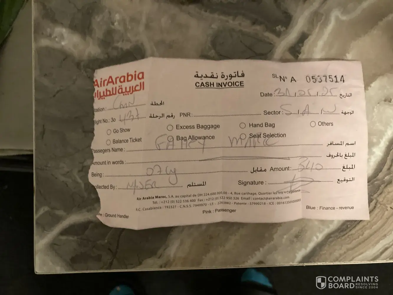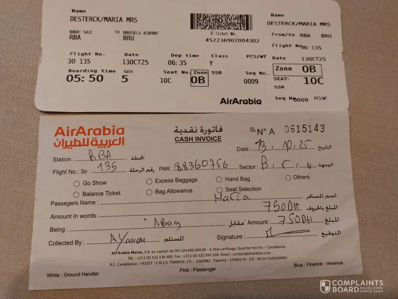 Dear Sir/Madam, On October 13, 2025, I took a flight from Rabat to Brussels with Air Arabia. A few days earlier, I had taken the same luggage on the flight from Brussels to Rabat. At the airport in Brussels, I experienced no issues whatsoever. At check-in in Rabat, I had to pay extra because my suitcase was considered too large. I have been traveling with...