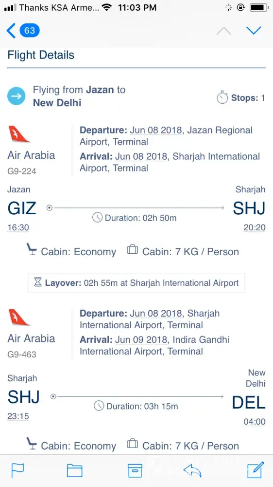 1. My booking reference was [protected], DMM-SHJ, June 13. G9164.