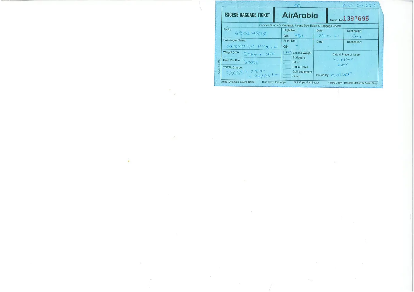 Excess Baggage Ticket no.1418698