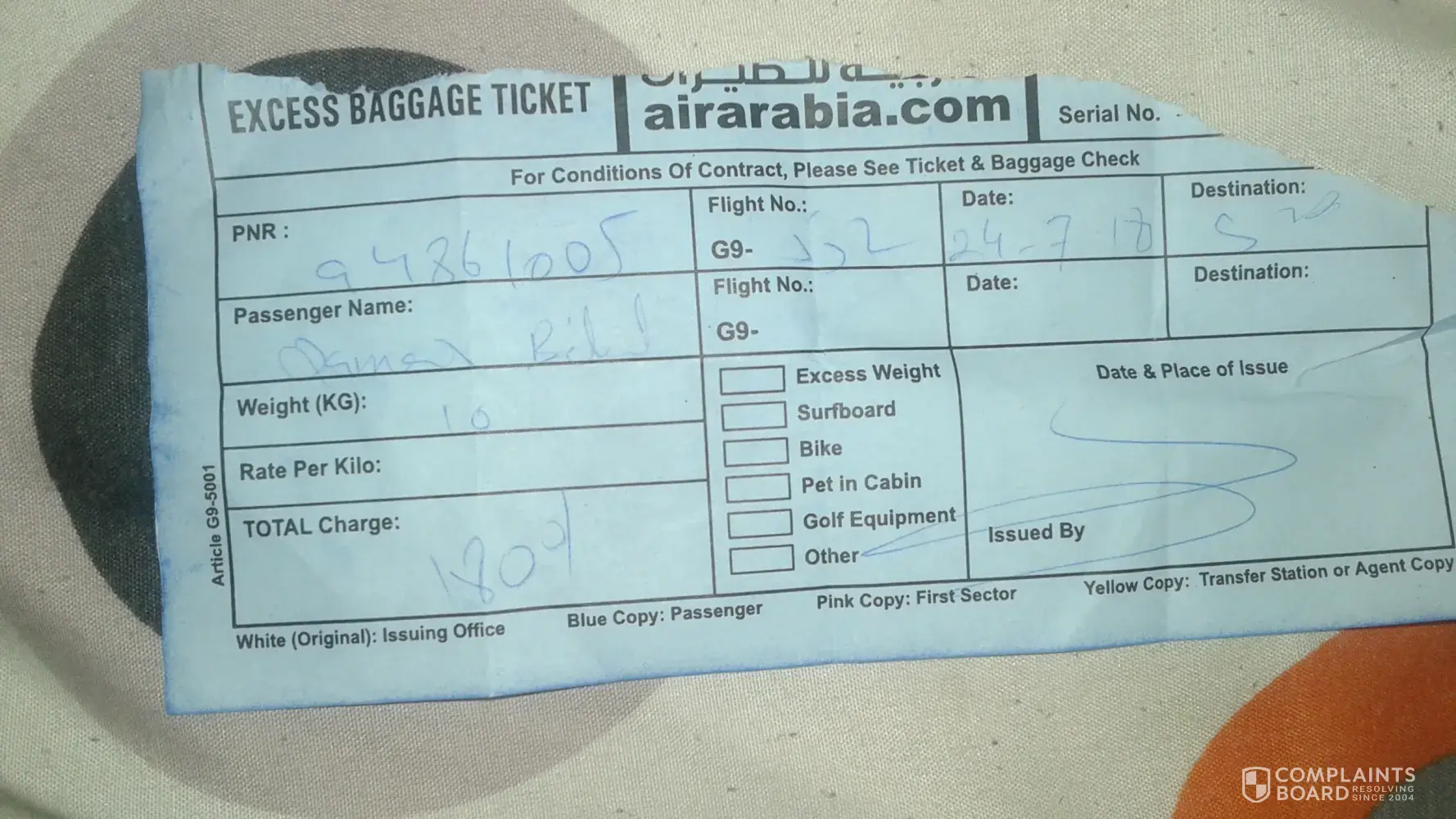 Good morning dear respected sir / madam I want to know way your staaf is doing this things I buy first time in life you air line ticket and first time you guys are doong this thing in my ticket mention 10 kg waight but your staaf saying only 7 kg allowed she charge me 1800 pkr for extra waight please clear this matter and contact me thank you I have also recept from you person from skt to shj PNR [protected] BILAL QAMAR