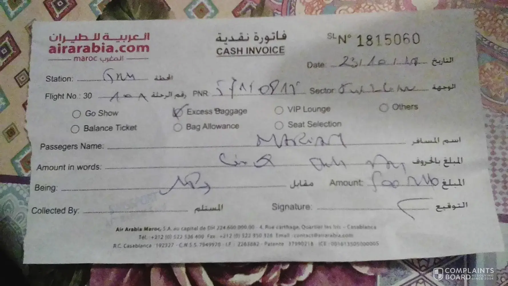 I spoke to the person in change at BCN airport, who told me that the luggage was left in Morocco and is there along with 2 other pieces of luggage from someone else on the flight. He gave me the paper and said the case will be sent in a taxi to my flat in BCN by Monday. This never arrived with now calls or assistant or reassurance. Finally some weeks later this is not true and Air Arabia have now lost my luggage and I will not be getting it back. I was told to send all my paper work via recorded delivery with an address to send it (2 different ones) I sent a further email as they were refusing to answer any of my questions or concerns and I explained that I had a word of sending my original paper work, since I didnt believe or have the confidence in the company that I will ever see it again and I am sure I will have problems. They told me not at all and to send it recorded to avoid problems. I did so and then had to email several times again and now they're telling me that I didn't send all the documents and without it they won't pay out. I posted everything as they asked and now still have further problems and I don't know who to turn to regarding my belongings. I have lost everything in that case. I am a designer and I have lost all of my own pieces that can never be returned. They are treating this case with no care at all. I am so upset and disgusted. Can you please help me to understand why you have staff that would do this?