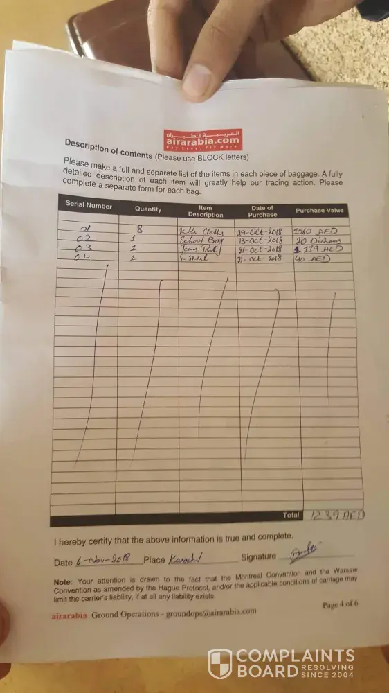 Since my brother travelled from sharjah to karachi 21/ 10/ 2018 and he finished his boarding and got an 2 token 1 for laggage and 1 for hand carry bag in hand carry bag there was an clothes for my childrens which i have bought around 800 or 900 aed and 1 was school bag and my brother clothes and the same bag has been lost from karachi airport since the days they keep awaiting us and saying once we will find we will let u know but there is no response from 1 weak ago when we called in karachi airport they saying give us 3 days we will let u know but still no one reaponding can you guyw please check and let us know i will be submitting complain receipt plz review and let us know and what is the update here is my contact details [protected] and email id is [protected]@gmail.com
