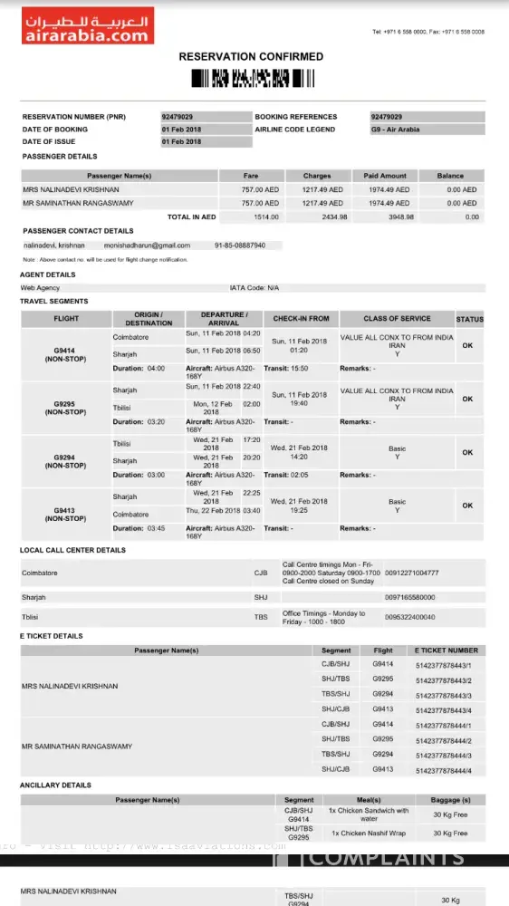 very cheep service in air arabia they doing cheeting services Dear customer don't take this company ticket .Beacuse my wife got very cheep Behaving this company staff