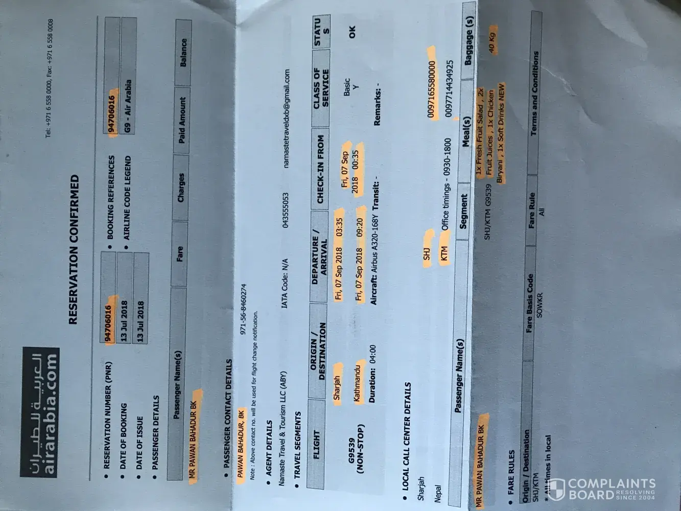 I took flight (G9539)from Sharjah to Kathmandu on 7 sep 2018 and I arrived in Kathmandu however I didn't receive my luggage due to this I have to cancel my local flight and I m not able to do my bank work.