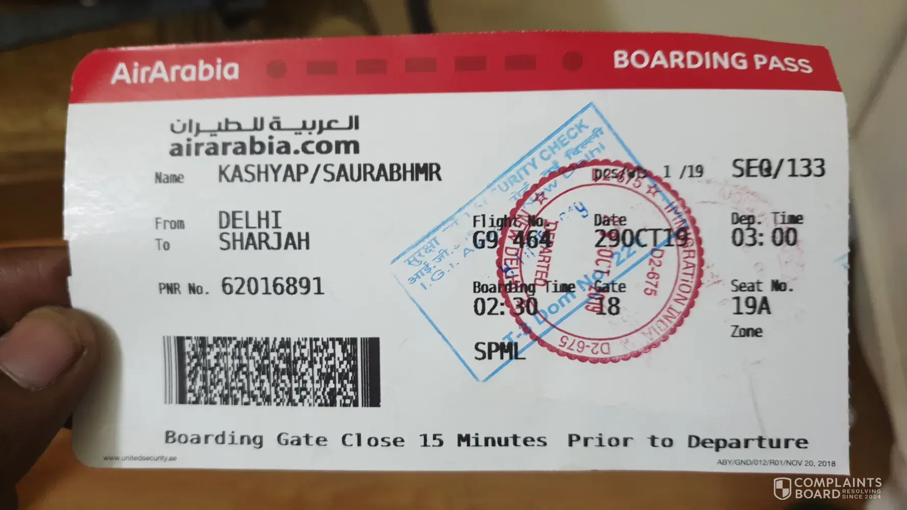 I was travelling from Goa to Sharjah by Air Arabia flight on 19th May 2019.