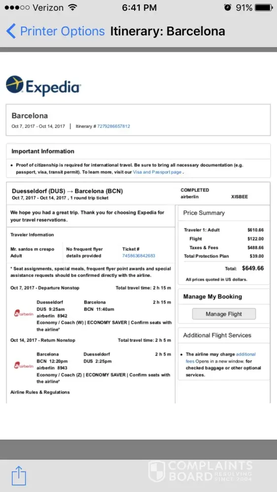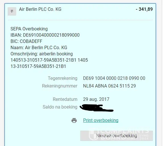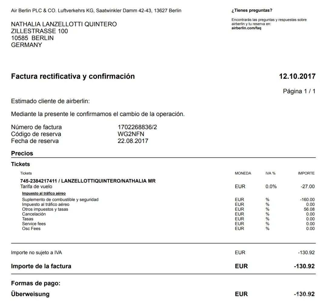 Today 18 October 2017 I took the Air Berlin