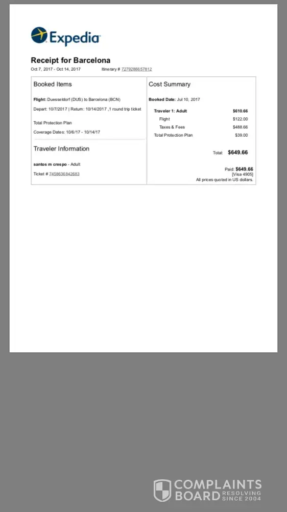 I am disputing the complete and utter dissatisfaction and having to purchase a completely new ticket due their fault not my own.
