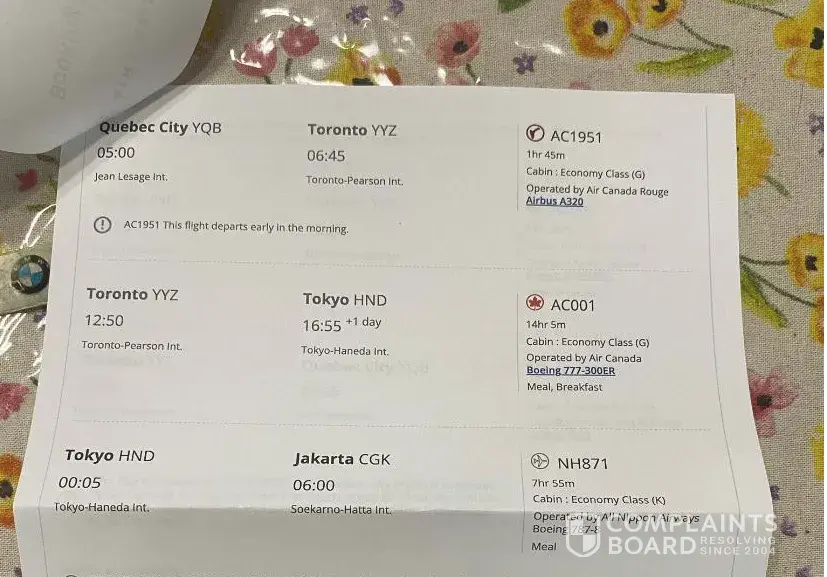 My flight to China from Toronto via Seoul AC 061 on Jan 15, 2024. (booking number 244-431-721)