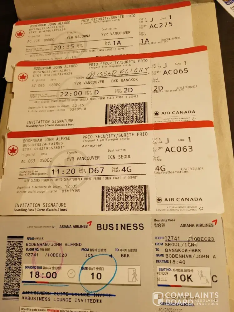 They gave me flights and boarding passes from Vancouver To Seoul then Seoul to Bangkok to fly out next day, which they paid for.