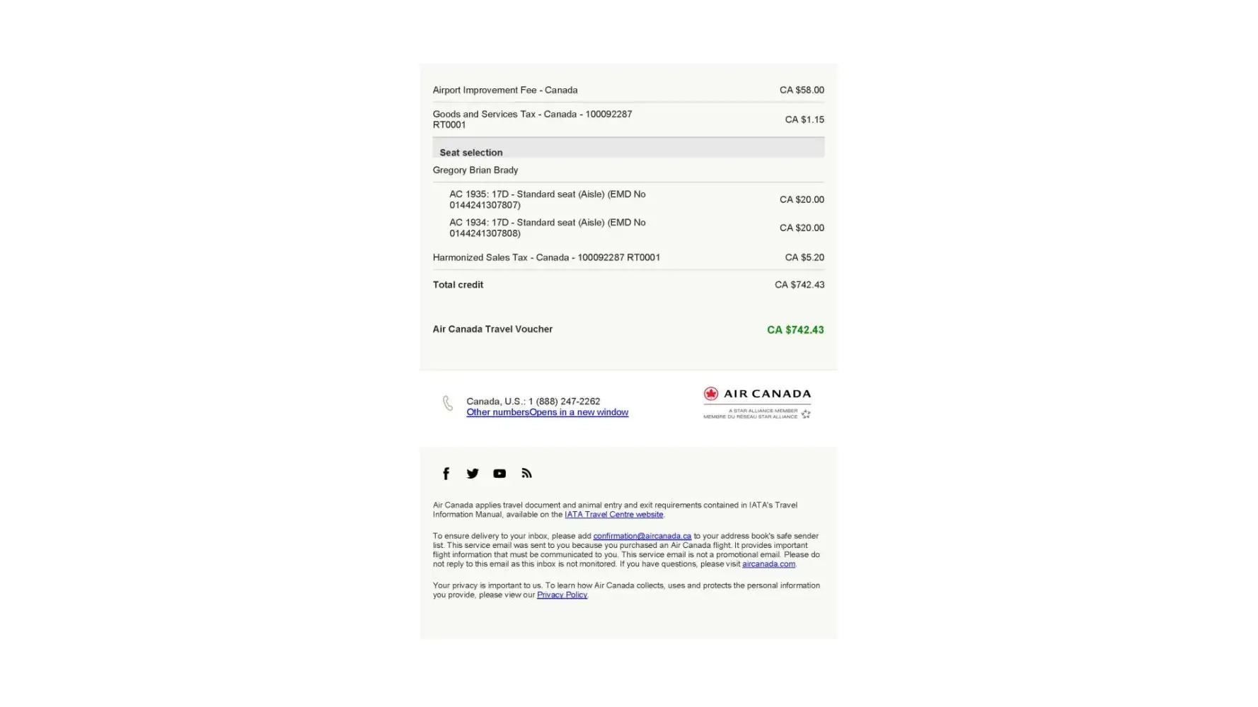 I got this reply back from Air Canada Customer Care: