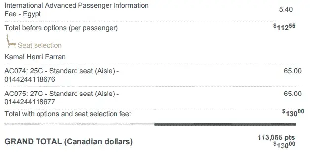 It is a non-sens that Air Canada charge a first bag and an icreased price for the seats when my booking was done with aeroplan points. Booking: 4Q3KMO