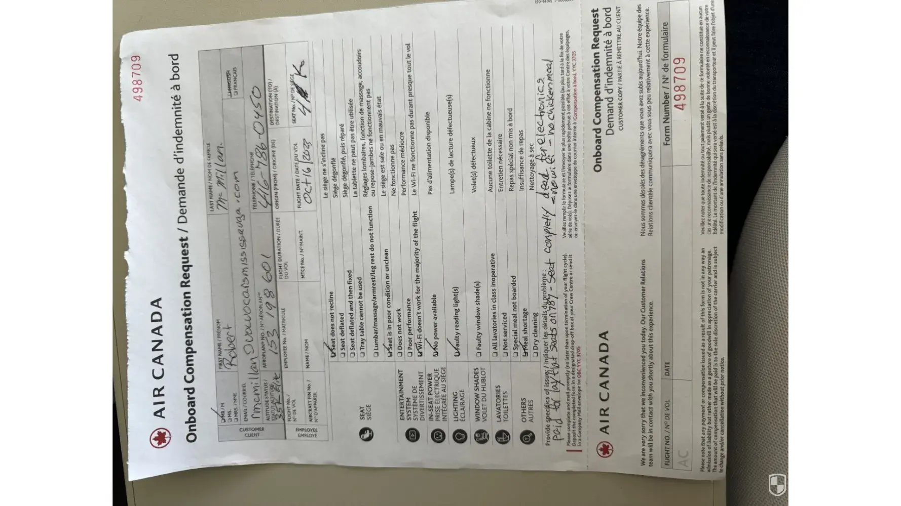 I have had no contact from Air Canada Consumer affairs on this issue, 1 month since flight