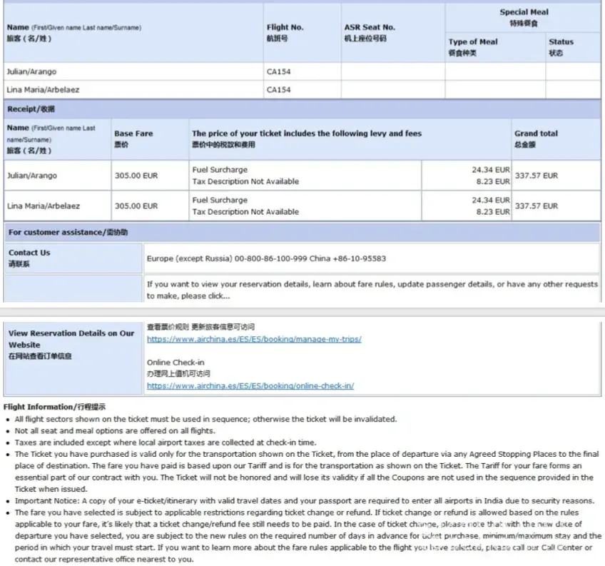 this is Emanuele Contini. I was supposed to fly from Nanjing to Madrid on July 6th, 2019 via Beijing, but the flight CA1504 from NJ to BJ was canceled. Air China tried to