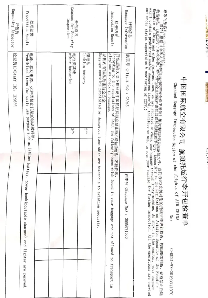 Dear, my name is muhammad aamir khan. I was traveling from beijing to islamabad on 11th september, via air china flight number ca945, etkt [protected]/1101. At airport my baggage was opened without my presence and few things were removed which were not meant to be removed. My 2 new e ciggrates were removed which were clearly without battery and reason was written in letter that they are with battery but they were not as it was written on box.