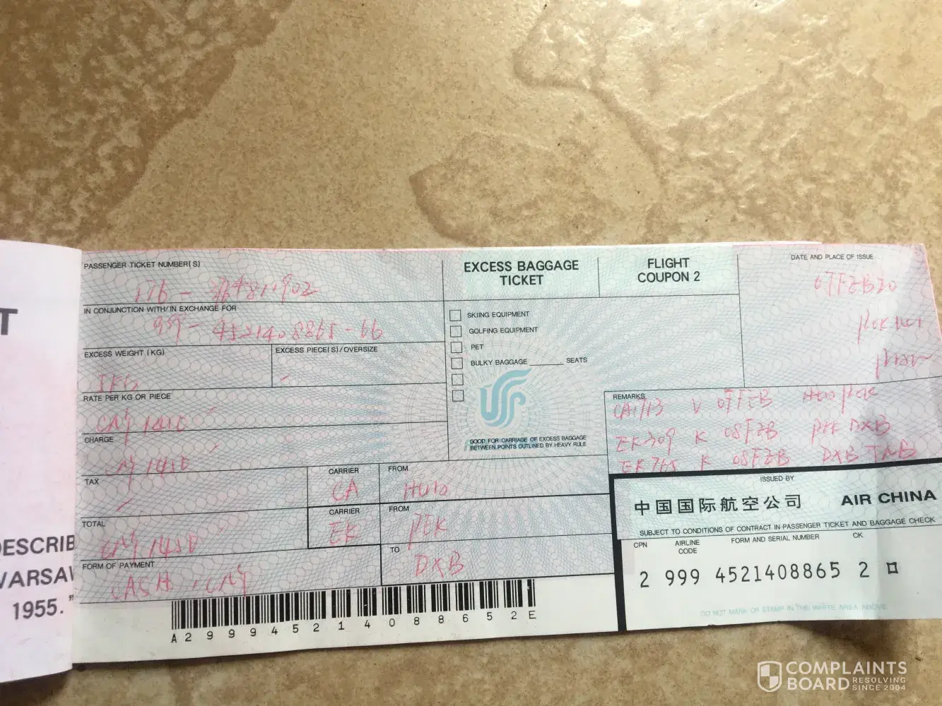On February 7th I flew from Hangzhou to Beijing using Air China. My luggage had an access fee, Air China decided to charge me a excess fee for my entire trip ( Hangzhou - Beijing - Dubai - Johannesburg) instead of just Hangzhou to Beijing. In Beijing I was getting onto Emirates. I gave Emirates the proof of access payment from Hangzhou and it was never accepted. I proceeded to complain to Air China in Beijing and I was told it's a Hangzhou error. I was given a contact number that was no use to me to call Air China in Hangzhou. Which I did and the number was invalid. I did my research and finally got ahold of Air China in Hangzhou, I told them what had happened and they told me they will do an investigation. Fast forward a month later. I still done have my refund from Hangzhou. I have laid a lot complains and I'm not getting assistance with my refund. I had to pay Emirates a full amount or I would have missed my flight. The inconvenience cause by Air China in Hangzhou and the lack of assistance is really unprofessional.
