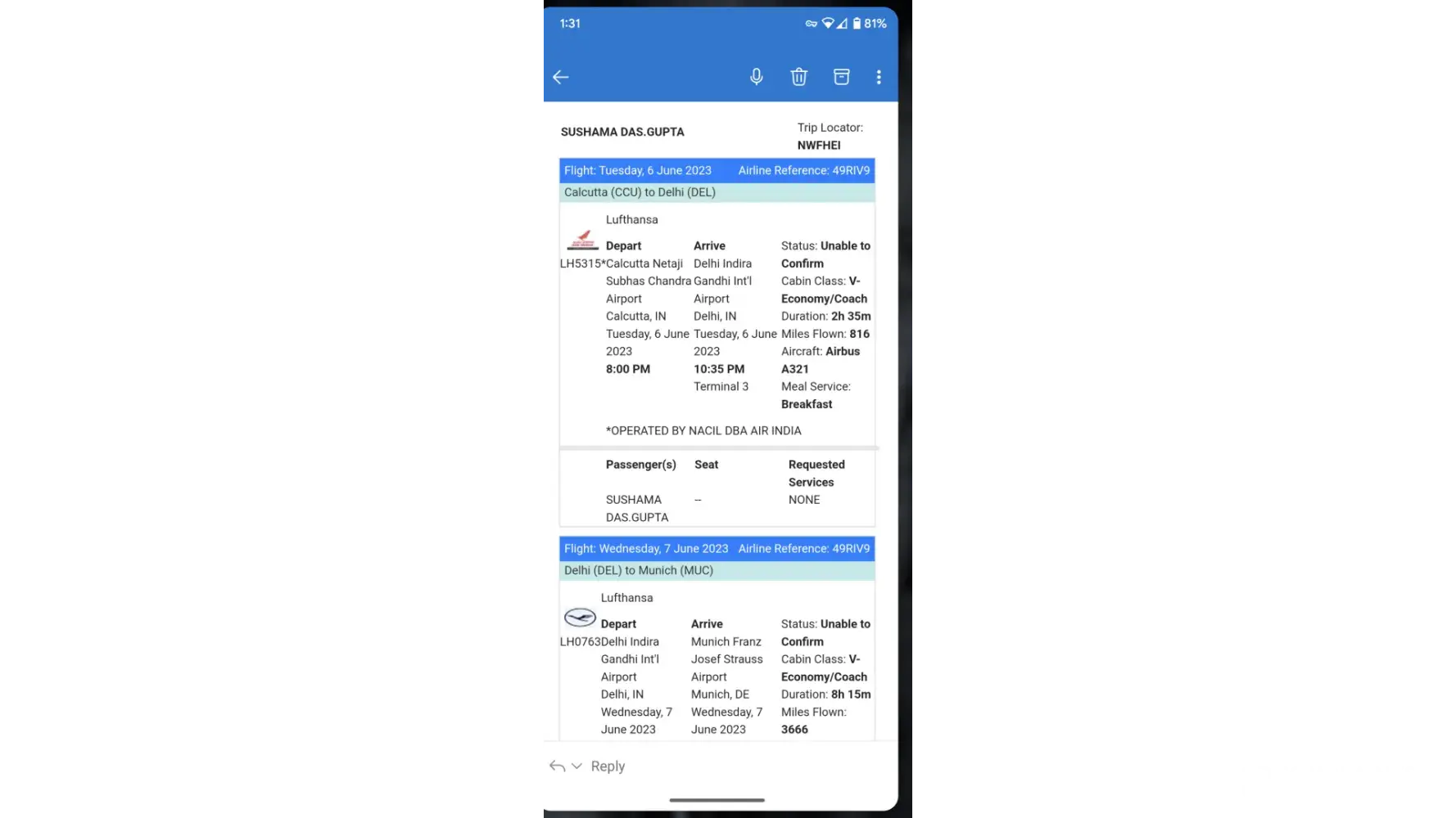 I Bought flight through Lufthansa for my mother - Kolkata to Charlotte, June 6, 2923. Kolkata to Delhi flight was a code share LH5315/AI770 - AI cancelled very late, and she became a "no-show" for the rest of the journey. AI did not update the cancellation with Lufthansa, so they refused to rebook her on the next flight. Had to spend countless hours on the phone pleading and ranting; finally had to pay a penalty of 200 to issue a ticket for 7 days later.