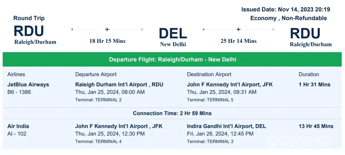 I have taken up this issue with AI customer care team but it’s just taking time without any alternate booking arrangements for me on or before 19 Nov.2023