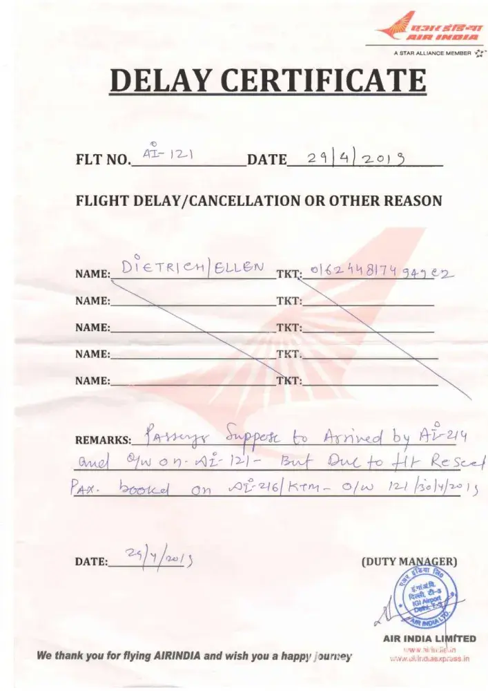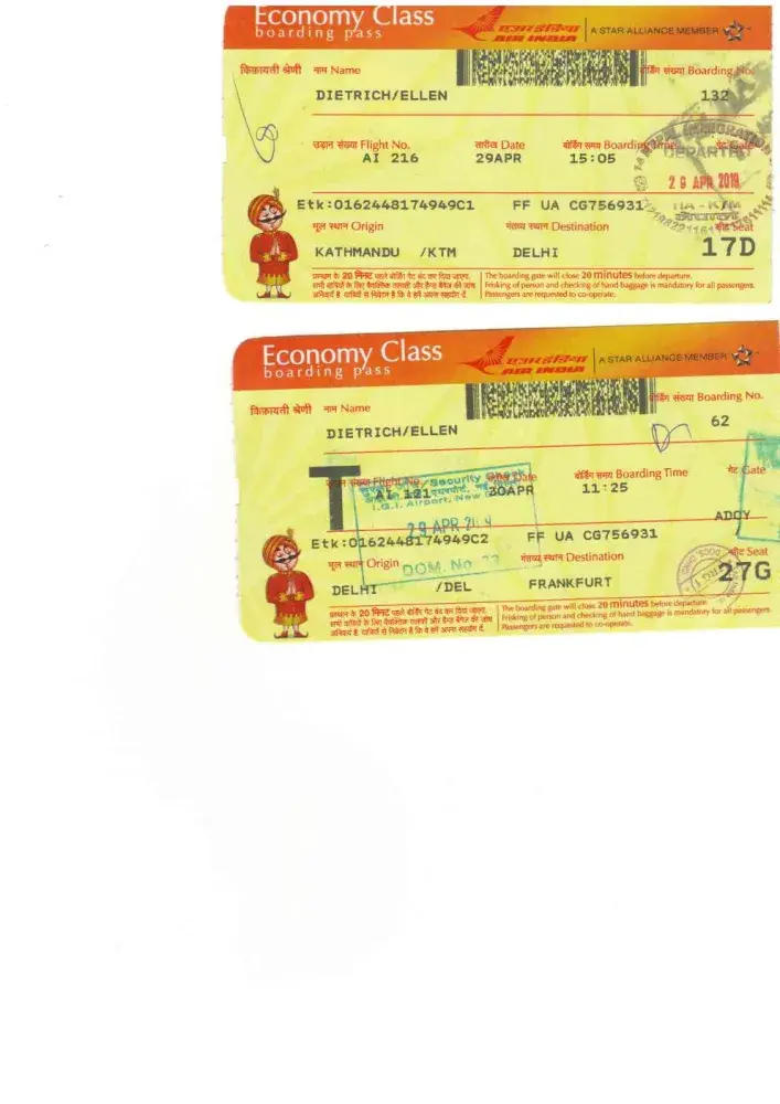 Mon, 29April19 AI216X Kathmandu, NP 3:35 p.m. to Delhi, India 4:50 pm