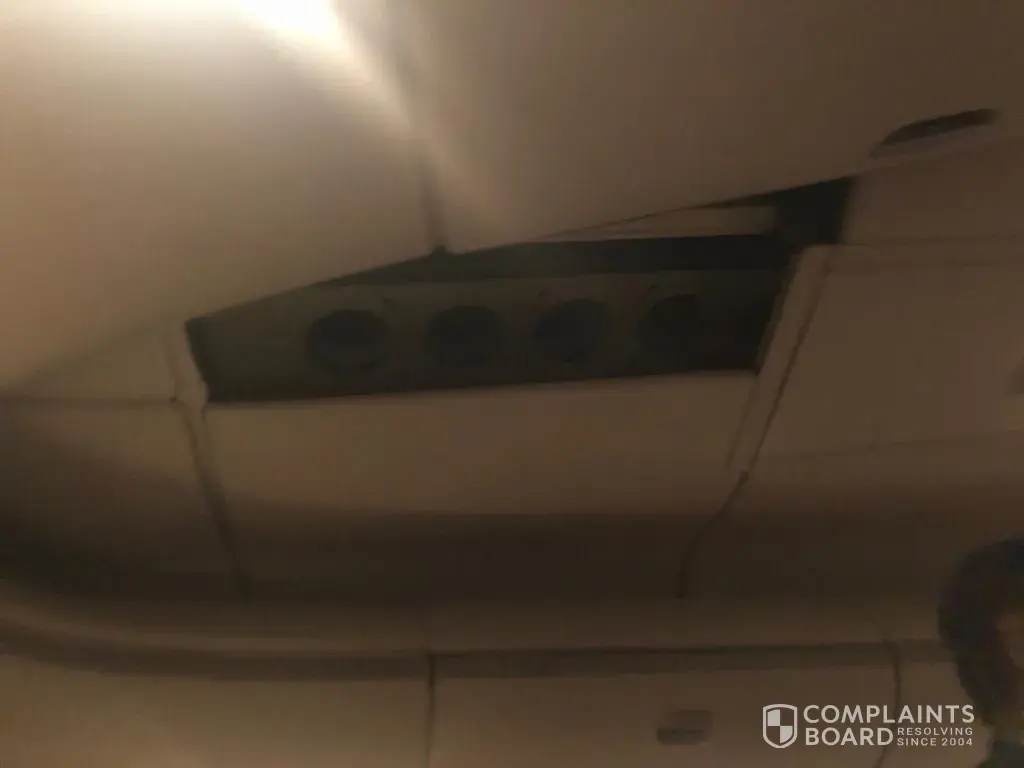 As soon as the flight landed in delhi, with the force and speed of landing, a large roof panel fell on my head, injuring me. It was a close save as I could have had severe head injury or even died.