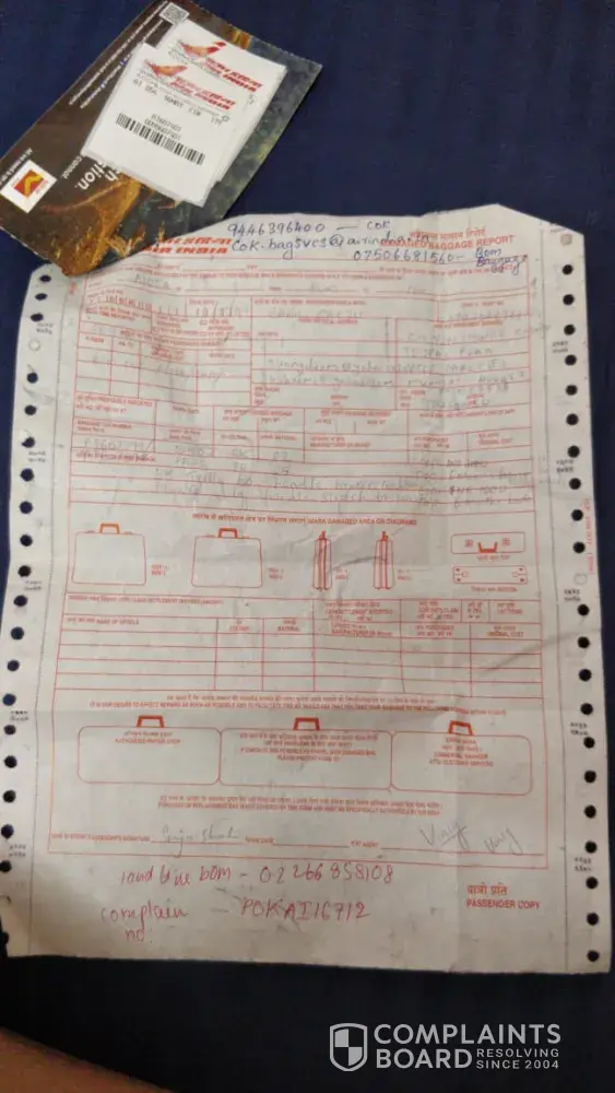 I was travelling in flight ai 054 from mumbai to cochin on 16 th may 2019 and brokem my bag and one hand bag as I made complaint and I have claim no complaint no pokai16712 as I am calling on the complaint no no one picking up the phone now even this bombay baggage co ia picking up the call no how do I take the claim kindly help