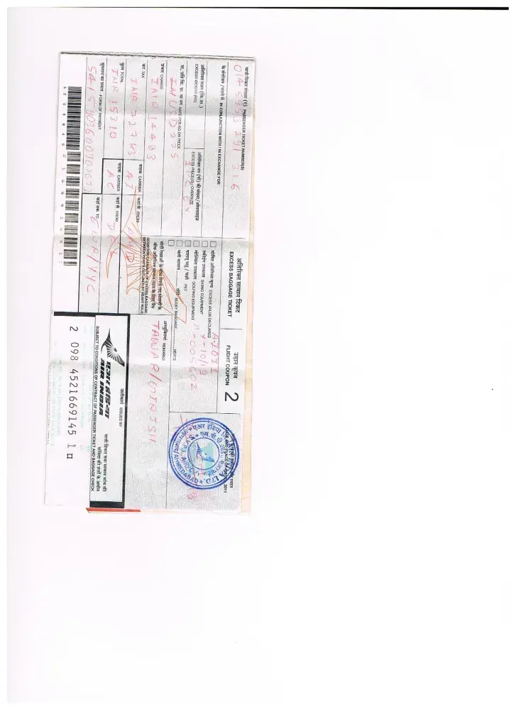 I left Toronto on December 27 to attend a very important wedding on Dec 30, 31 and January 1. I landed at Mumbai airport (Ticket # [protected]). I had in total three bags (two + 1 which I paid $225 dollar). Below are the Baggage Tag numbers for your reference. I did receive two bags but lost my third bag at Ahmedabad International Airport and I received this bag on Jan 1st at 4pm which is basically after the wedding. My bags had very important clothing and ornament to be wore for the wedding which I couldn't wear so I had to buy around $800CDN (40000 INR) for wedding materials.