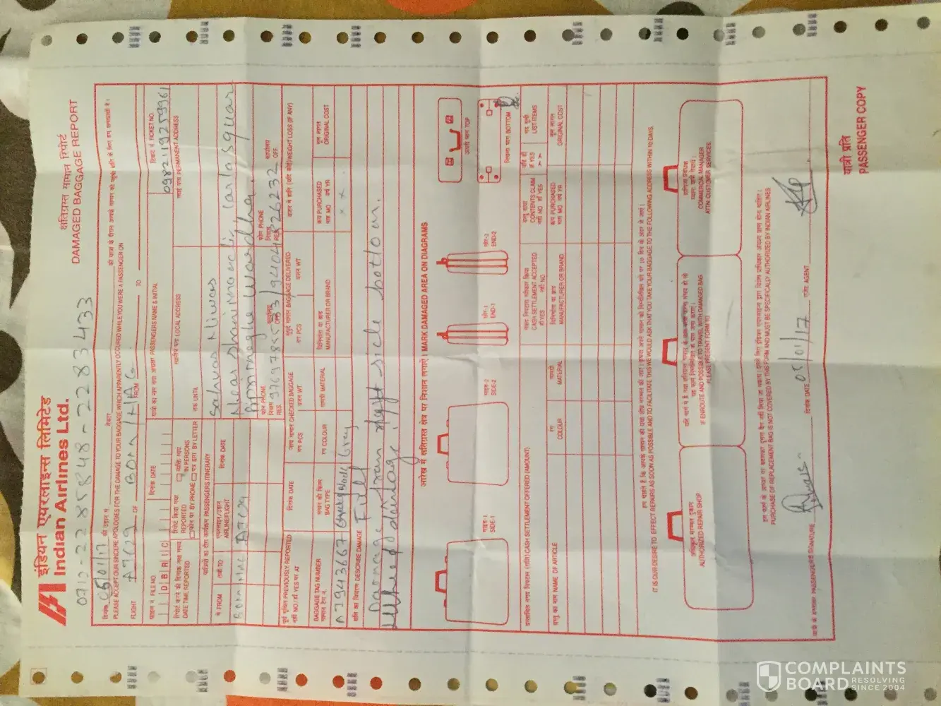 My baggage was damaged due to mishandling during my travel from Mumbai to Nagpur. Following are the complaint details for your reference, I expect quick action from Air India.