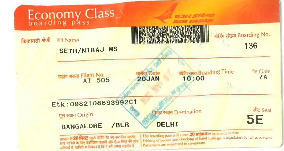 2. Date of travel : 13.08.2014, Mumbai to Delhi, Flight No. AI 866