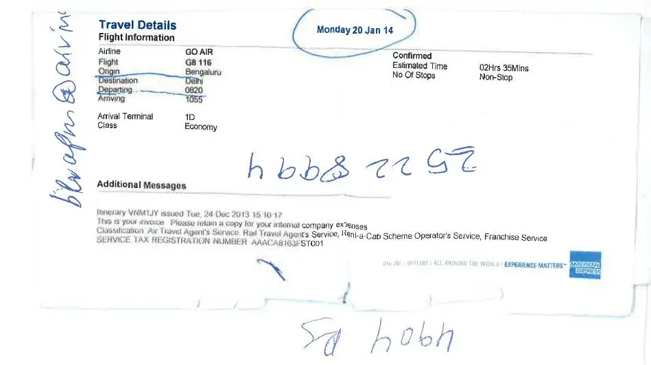 1. Date of travel : 25.03.2014, Mumbai to Delhi. Flight no AI 348