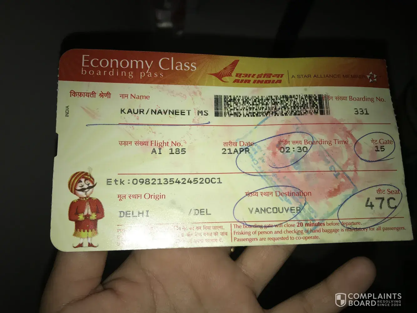 AirIndia Case Number: 10001047
