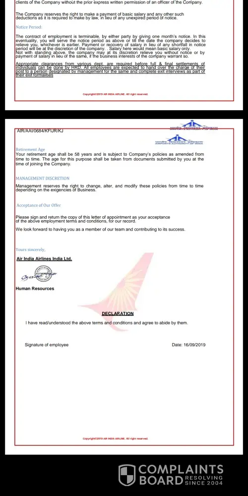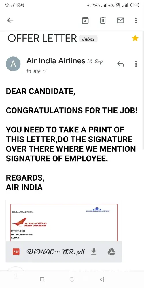 Then he told me to pay (2500) and sent receipt or screen shots of online transactions.so i believed him then sent rs.2500 via Google to above mentioned account. After that i asked him letter. Then his mind changed again he asked me verification Processing fee @4600 and it's also refundable in 1st month of salary, so i had paid rs.@4600 via Google pay and he said to pay for providing a punching card and employee id card which is issued by my name. This amount is refundable after three months.i will pay @(11, 700) rupees, he said don't worry we air india do not do such thing pay till today i will dispatch letter today. I asked him where letter, I got a offer letter.oct 1st is my joining Date. Now i call To Munika mam.she will not be responding my calls. So what i will do? Am i lost my (2500+4600+11700) rupees, totally 18, 800rupees. How can i return back this amount?