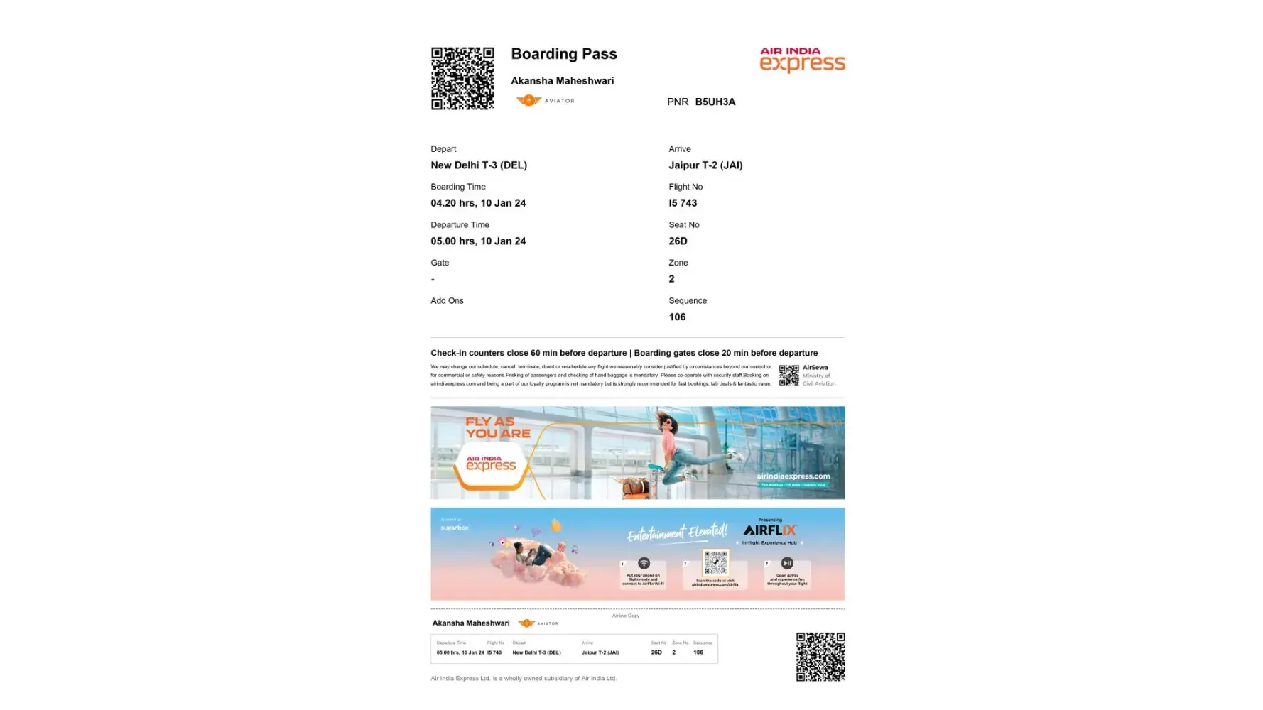 This is for our flight in 2nd Jan 2024 from delhi to Bangalore at 7.50 am.