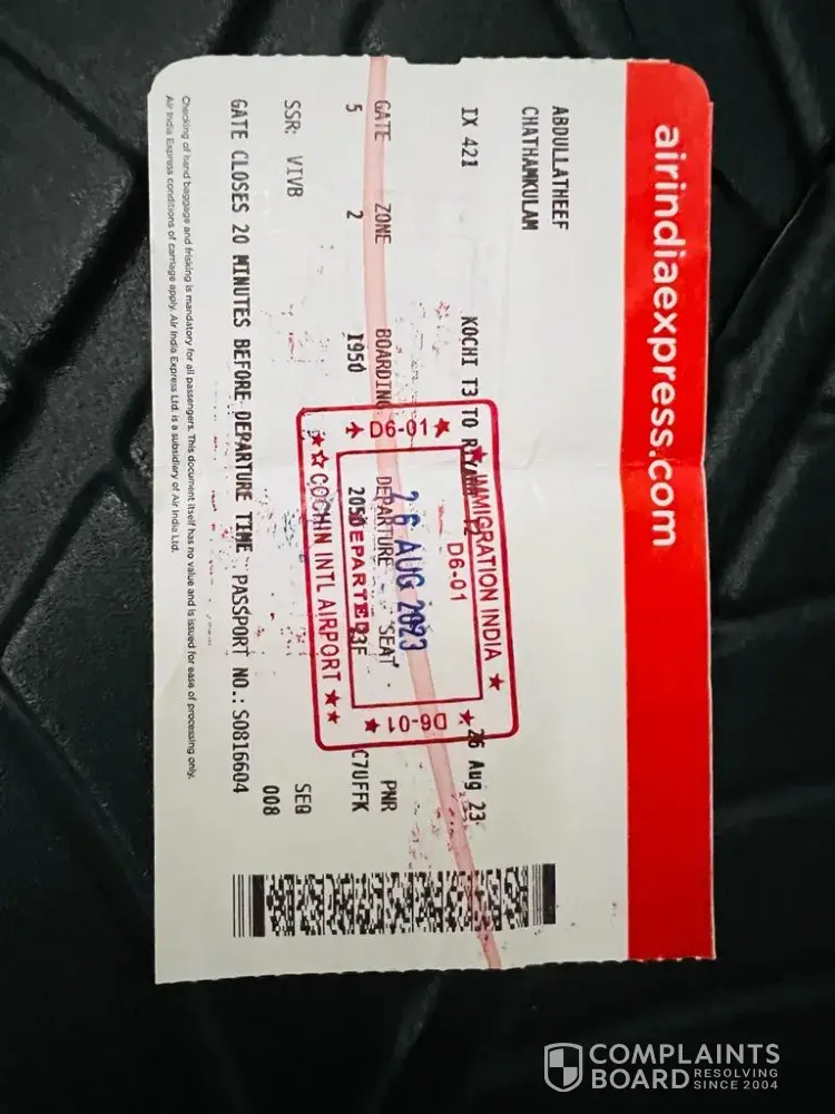 I did travel by Air India Express IX 421 from COK to RUH on 26th Aug 2023 with 01 pc of Check In Baggage.