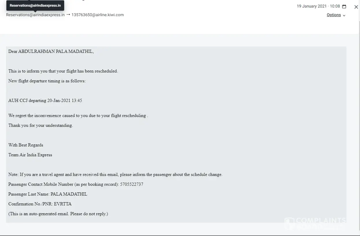 My ticket date was resheduled by Air India Express without my knowledge.