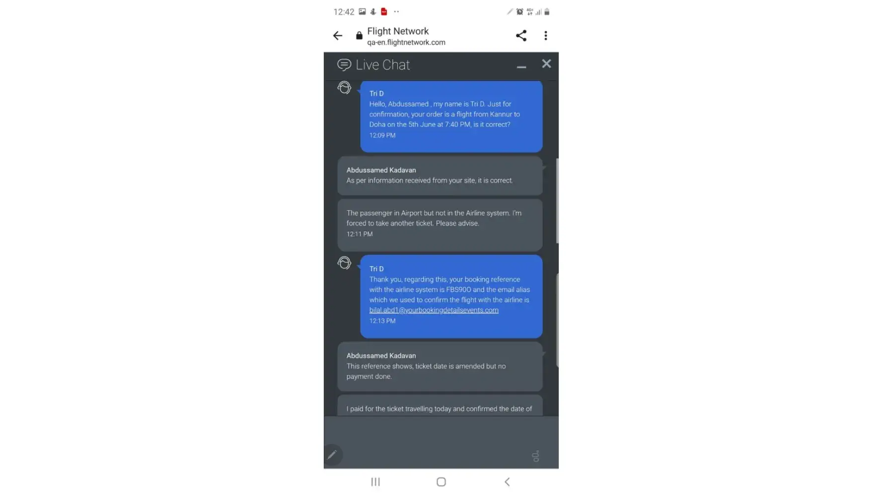 3. On the day of travel, checked from Flightnetwork and confirmed the date of travel is 05.06.2023, after chat with online assistance. Meanwhile, in Air India Express system shows no data and the ticket was confirm to travel on 27.05.2023, without any payment of extra charge.