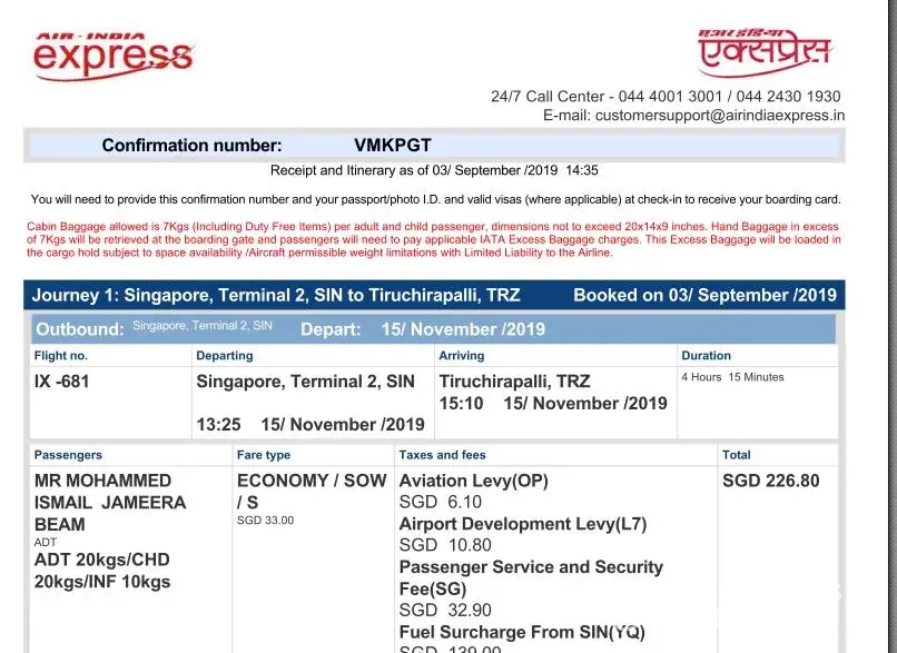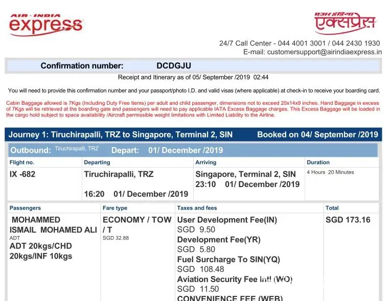 I had a booking for my daughter from Mangalore to Muscat today (7 Jan 2022) in IX - 817 (leaving Mangalore at 9-00 AM). The PNR Number is 6T58SW.