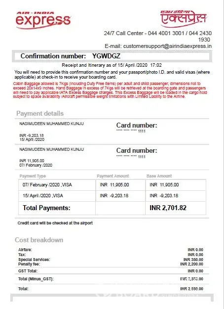 I am totaly unhappy with response from Air India express that they failed to make or adjust refund to the credit card.