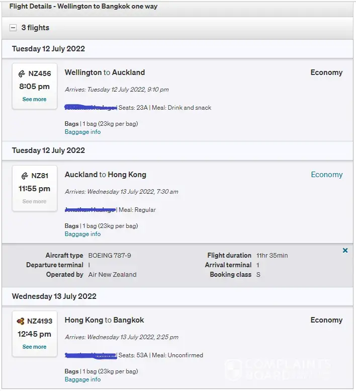 Air New Zealand Air New Zealand flight - details below. I want my money back