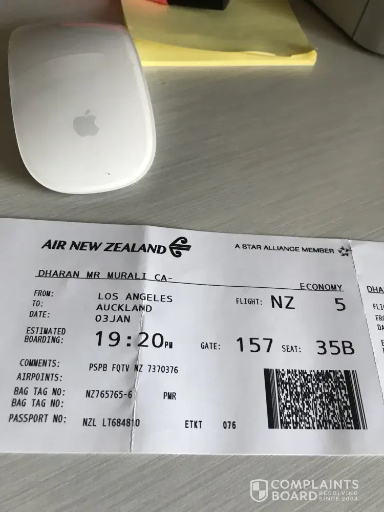 I booked a ticket via Air NZ from Palmerston North to Los Angeles Return my ticket No: [protected] and Booking Reference Number G5HJGH, leaving NZ on 15th December and return flight on 3rd January from LAX.
