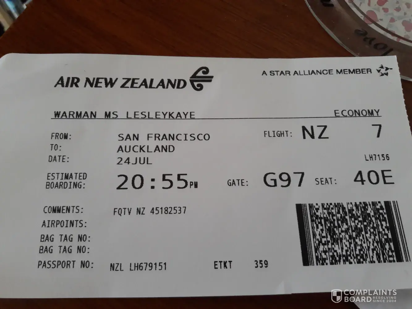 On Wednesday 26 September my family checked in for a flight to Auckland and then on to San Francisco on NZ0008.
