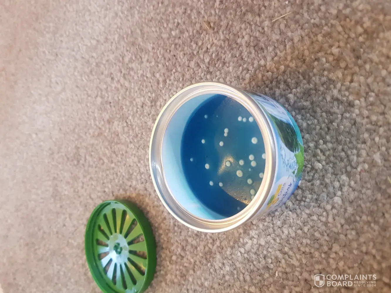 Bought the scented gel from asda 3 weeks ago and just noticed that there is white spots through the top vent.i opened it it looks like white mould? Not happy as this has been in my bedroom! I've took pictures and have looked on the bottom and it's out of date ! Which shouldn't have been sold