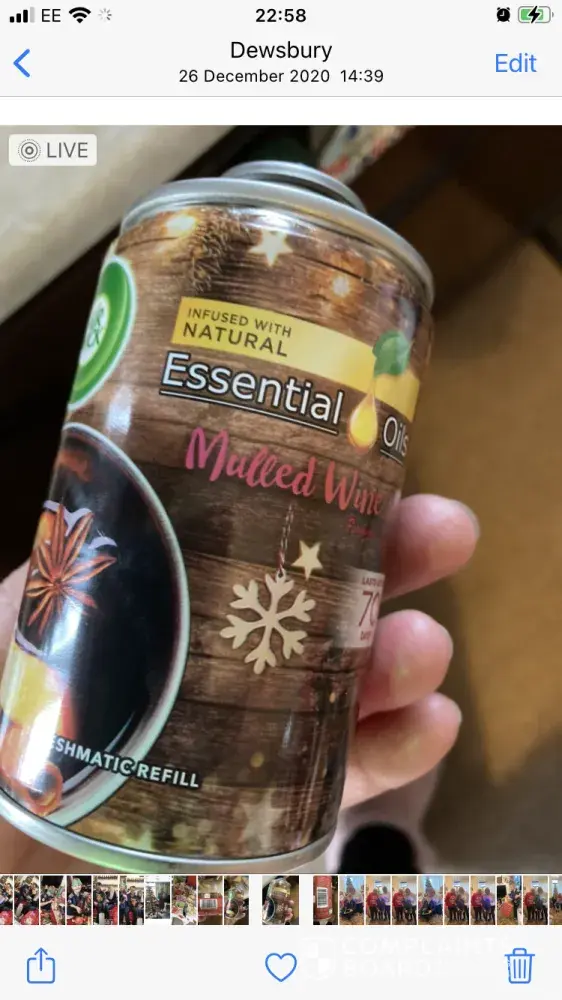 I bought a pack of two mulled wine refills and the top has broken off completely of one of them. I am annoyed as it is a full can and they are quite pricey to buy. The first airwic k product l bought was 14 years ago and has never been any bother, the latest one l have is really awkward to close it pops undone all the time not so good for arthritic hands. The new caps on the cans now are not so good as the original.